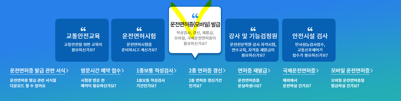 도로교통공단 안전운전 통합민원사이트 적성검사 갱신 바로가기