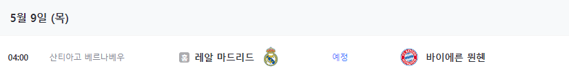 2차전은 5월9일(목) 오전4시 레알마드리드 홈에서 펼쳐집니다.