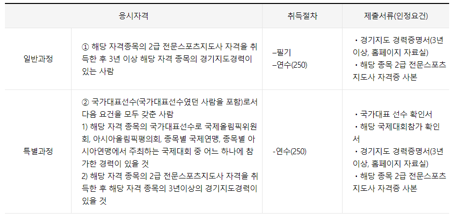 1급 전문스포츠지도사 응시자격