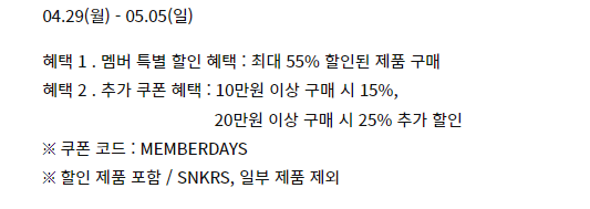 나이키 멤버데이즈 이벤트가 있습니다. 이벤트 참여기간은 4월24일(수)부터 28일(일)까지입니다.