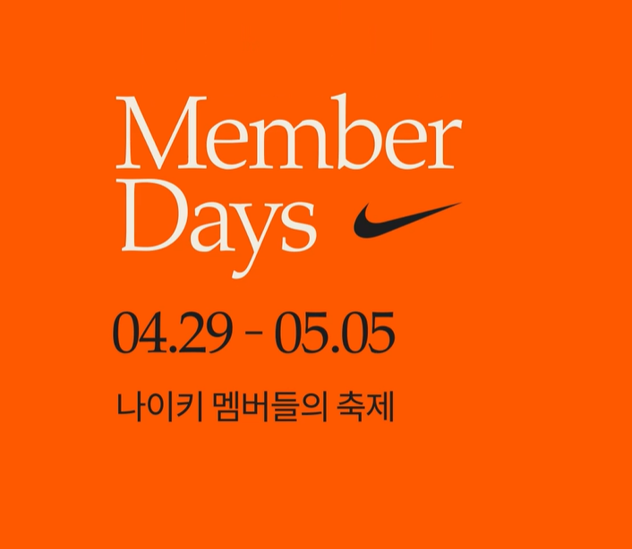 2024 나이키 멤버데이즈 기간은 2024.4.29.(월) ~ 5.5.(일) 7일간 진행됩니다.