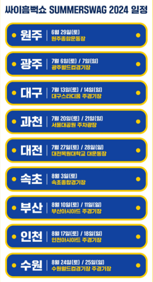 2024 싸이 흠뻑쇼가 시작됩니다. 8개 도시에서 공연이 예정되어 있습니다.