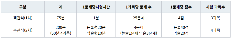 - 1차시험에 합격한 사람에 대하여는 다음 회의 시험에서만 1차시험을 면제합니다.